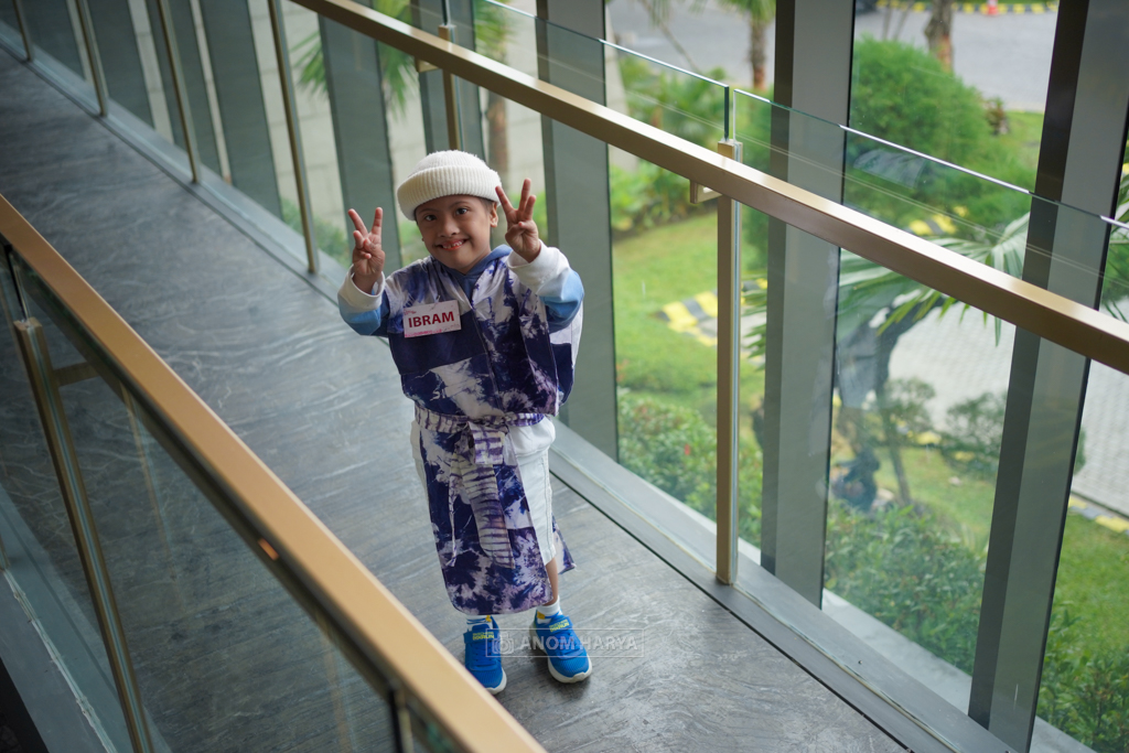 Begitu sampai di lokasi pemotretan (Hotel Mercure Malang), aku langsung penasaran dengan talent yang akan kufoto. Ada sekitar 20 anak down syndrome yang sudah rapi menggunakan busana dari sponsor. Wow mereka terlihat anggun dan lucu, seperti anak-anak pada umumnya. Berbeda sekali dengan kesan kumal yang kutemui di jalanan.